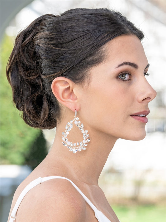 Hand-made Opal and Clear Crystal Silver Hoop Bridal & Prom Earrings