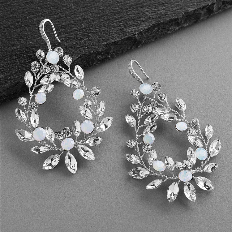 Hand-made Opal and Clear Crystal Silver Hoop Bridal & Prom Earrings
